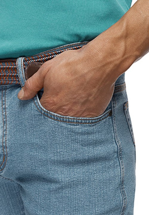 City Club's slim fit, mid rise jean short is made from robust and comfortable stretch denim. Featuring City Club's Vario Waist technology and available in three essential washes, Brooklyn is the perfect go anywhere short for summer!