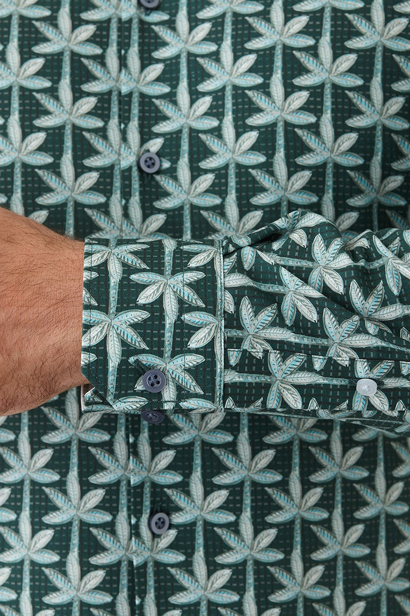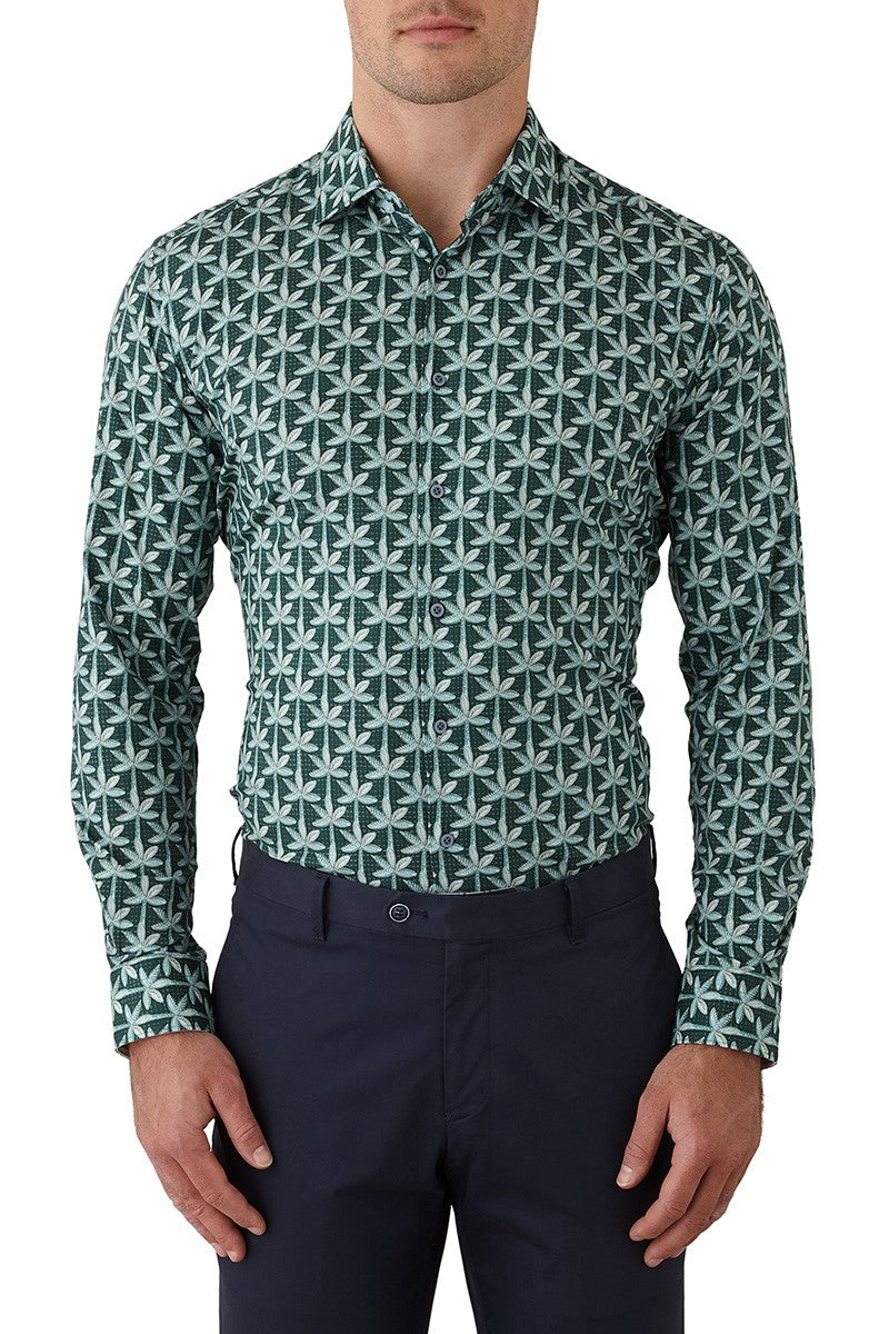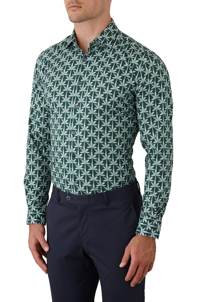 Part of our Gibson Go range and crafted from a cotton and elastane blend, this slim-fitting long-sleeve shirt features a point collar and regular cuffs. The hand-painted palm tree print paired with contrast collar and cuff details, creates a distinctive yet easy-to-wear statement piece.